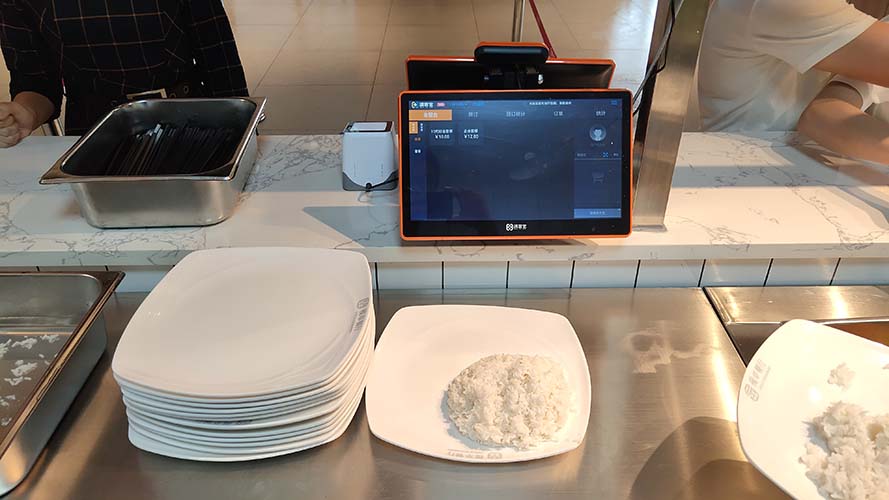 - RFID射频识别结算:每个餐盘底部嵌入RFID芯片,餐具与菜品绑定,放在读写区自动计费。稳定性高,但需管理专用餐具。